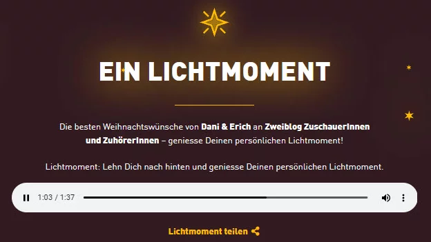 Wir machen das dieses Jahr mit einem ganz besonderen Lichtmoment. Wir haben etwas möglich gemacht, bei dem du nicht einfach ein Kärtchen mit Bild und Text verschickst, sondern einen persönlichen Weihnachtssong.